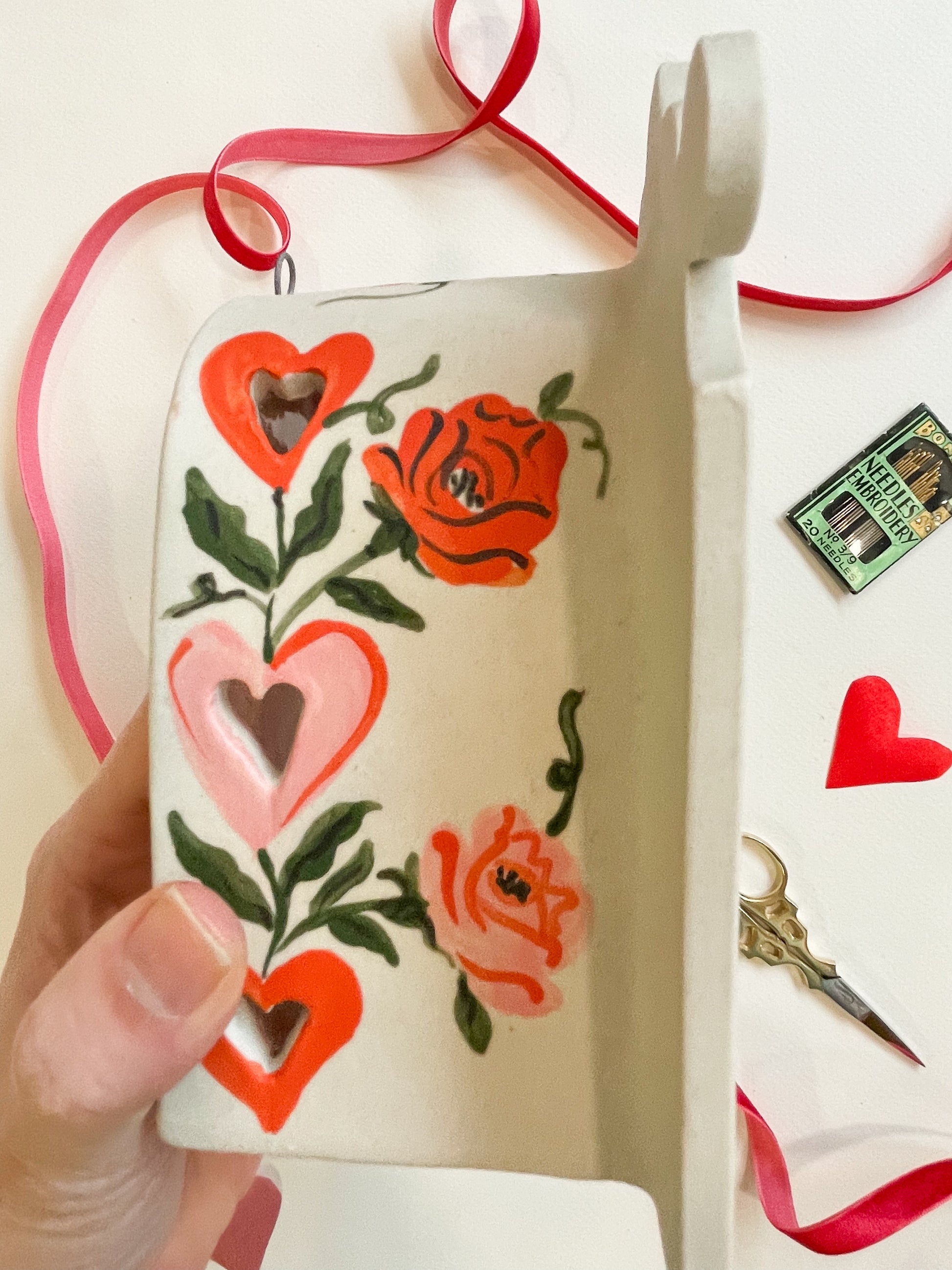 How they are made: Hand built with stoneware clay, hand painted with a paintbrush, dried for days, fired to bisque-ware, a glossy clear glaze is applied and then fired a second time in a skutt kiln over 2000 degrees.
