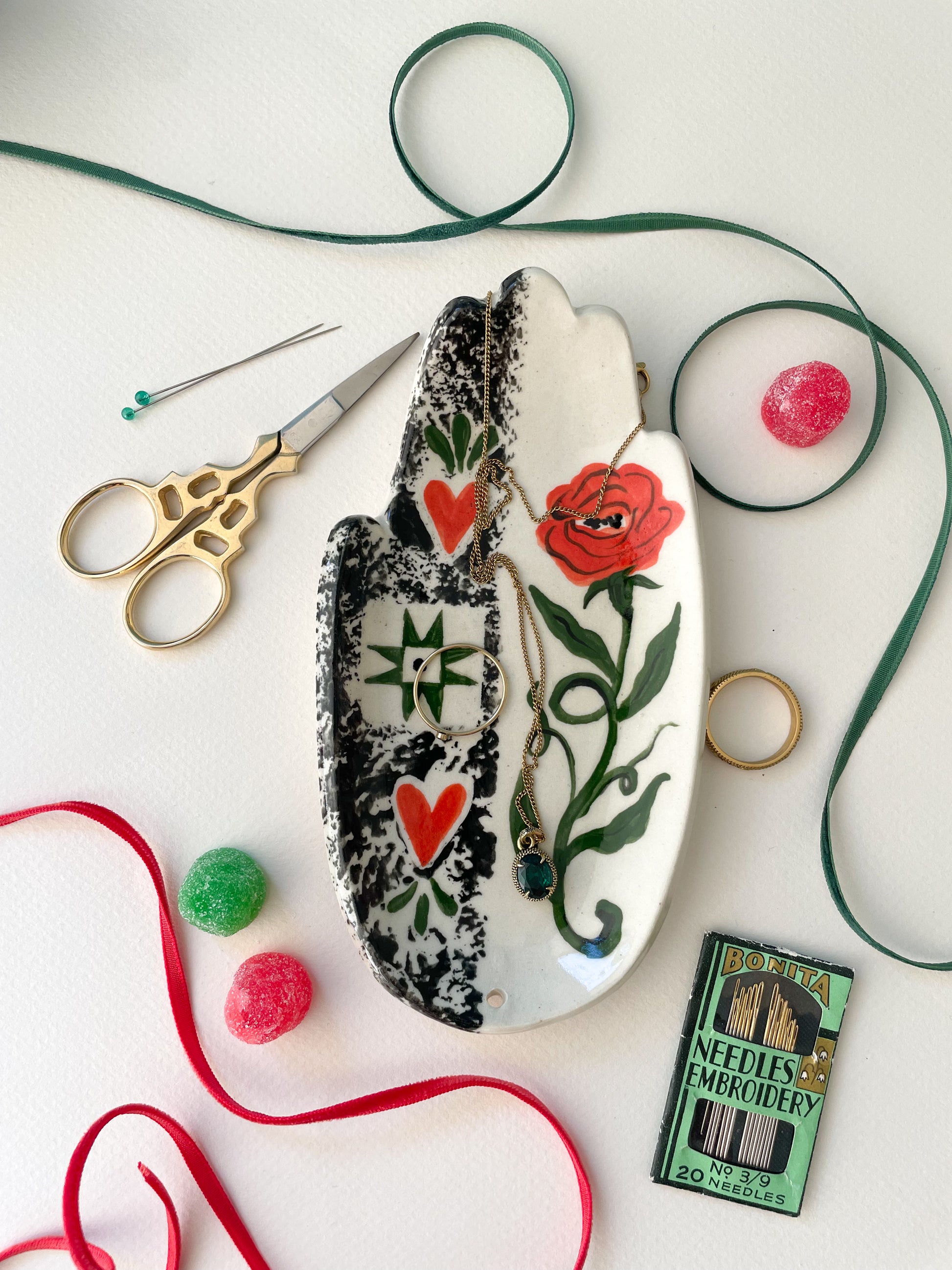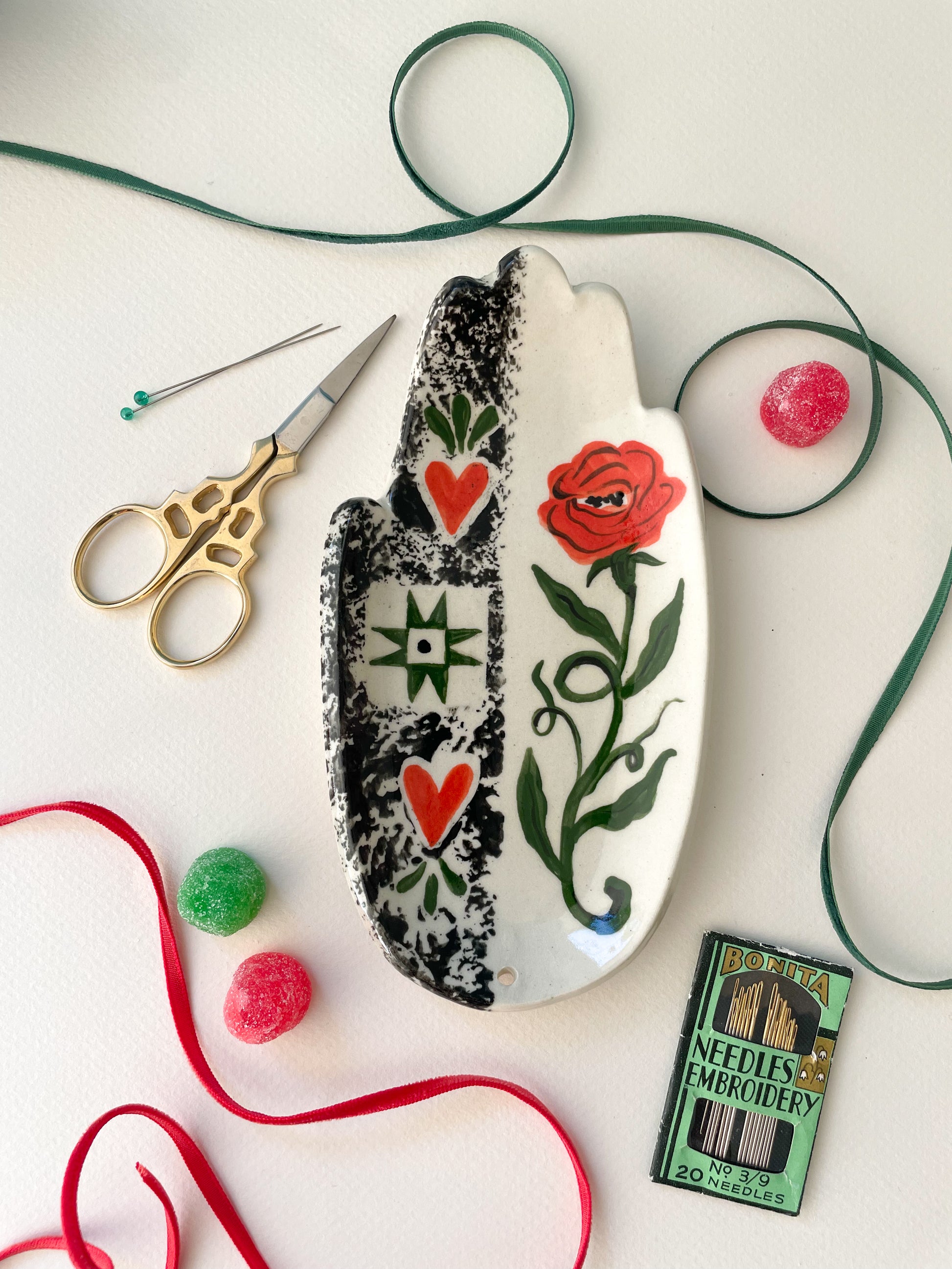How they are made: These hands are hand-sculpted, under-glazed, fired in a kiln, then a clear glossy glaze is applied to the top and the edges after which they are fired a second time. The bottom is raw ceramic clay body. Wipe with damp cloth to clean or wash gently with mild soap and water