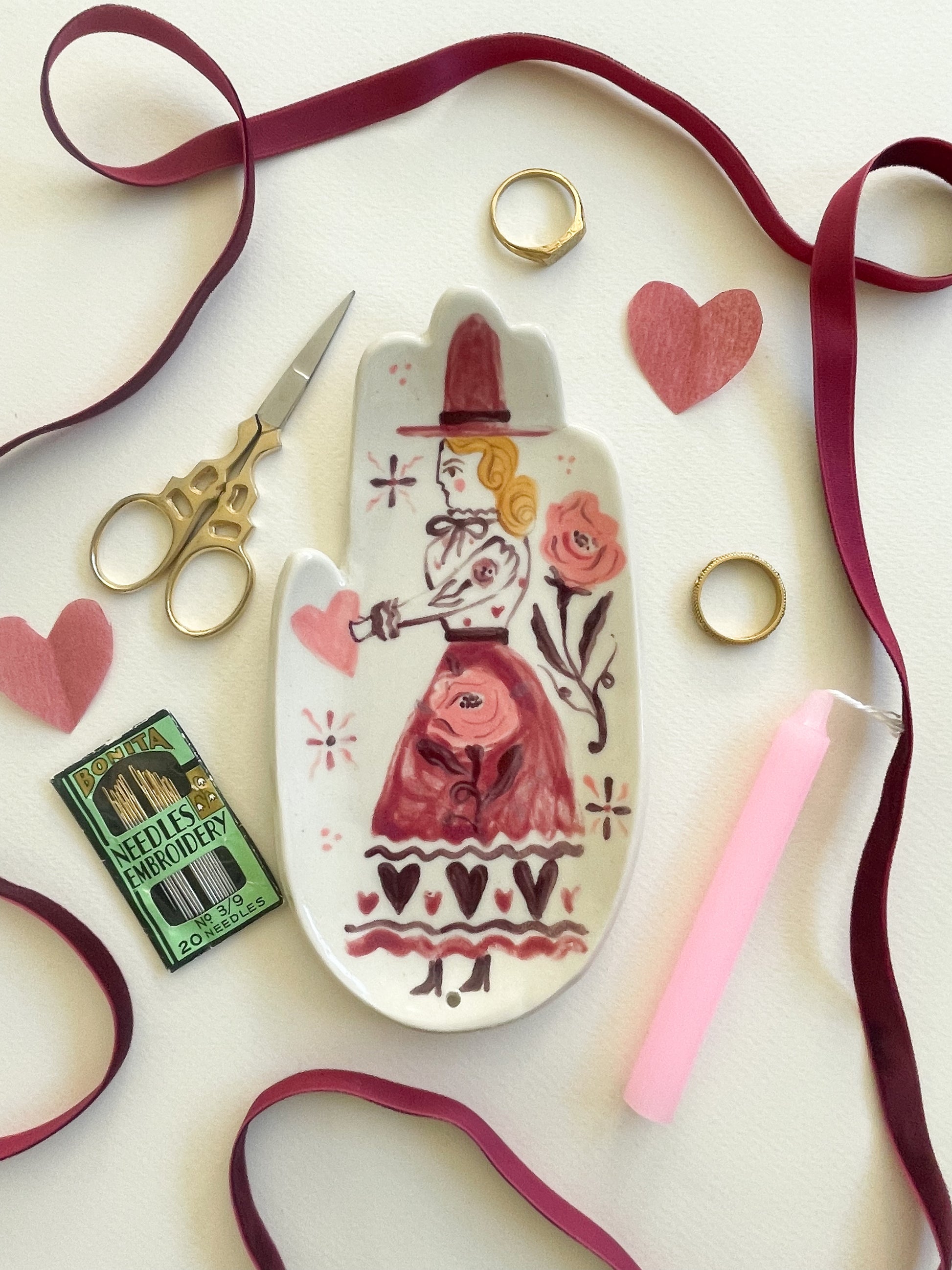 Place one of these ceramic incense burners on a coffee table, nightstand or on your alter. Set an intention, light your favorite incense and let it go! These palms fit a regular size incense stick or shorter stick (my favorite is morning star) Feel free to also burn cones or use it as a trinket holder. Sometimes I use one to lean my paintbrushes on! They make wonderful one of a kind gifts and bring a sense of magic into any room.