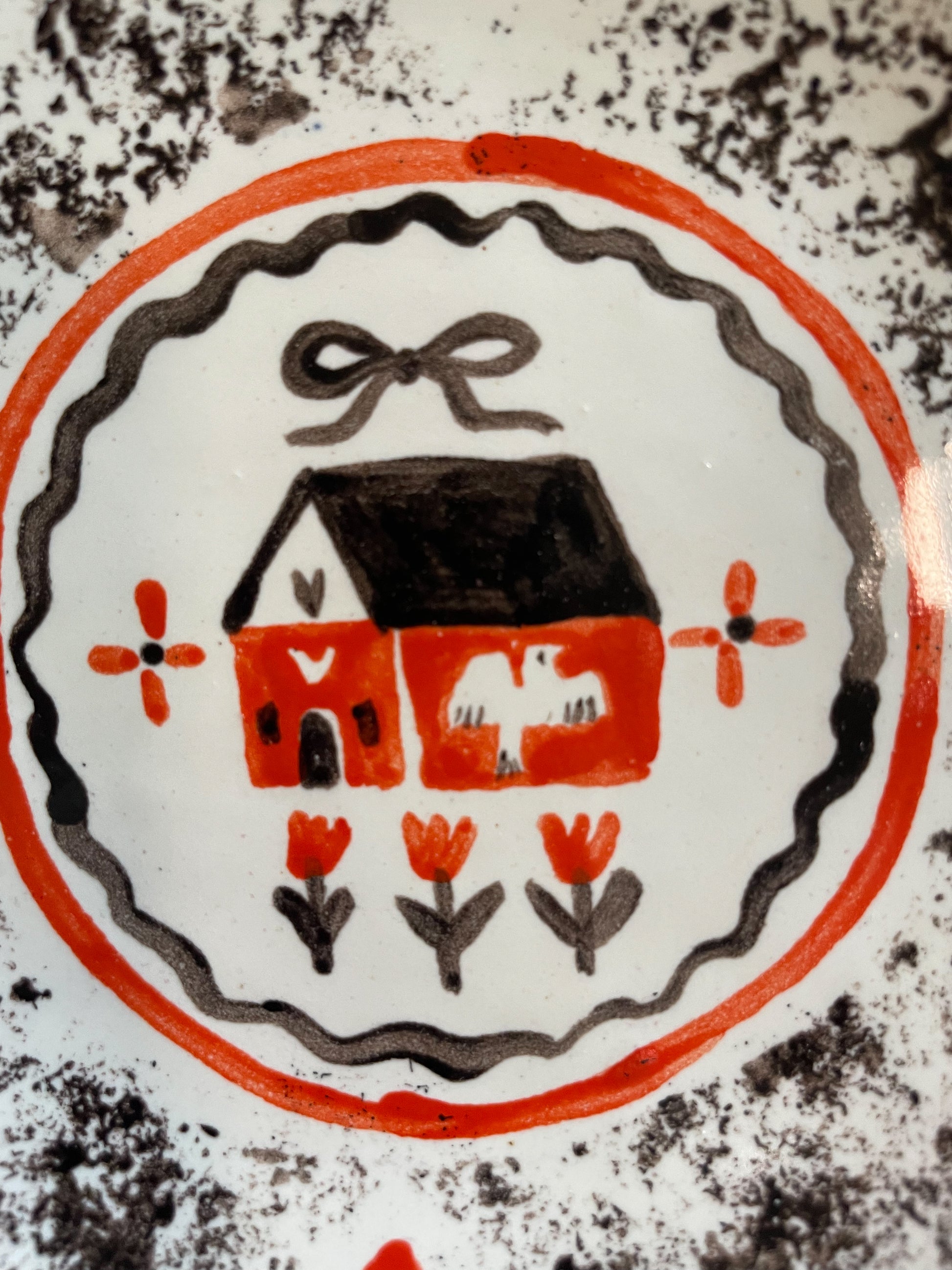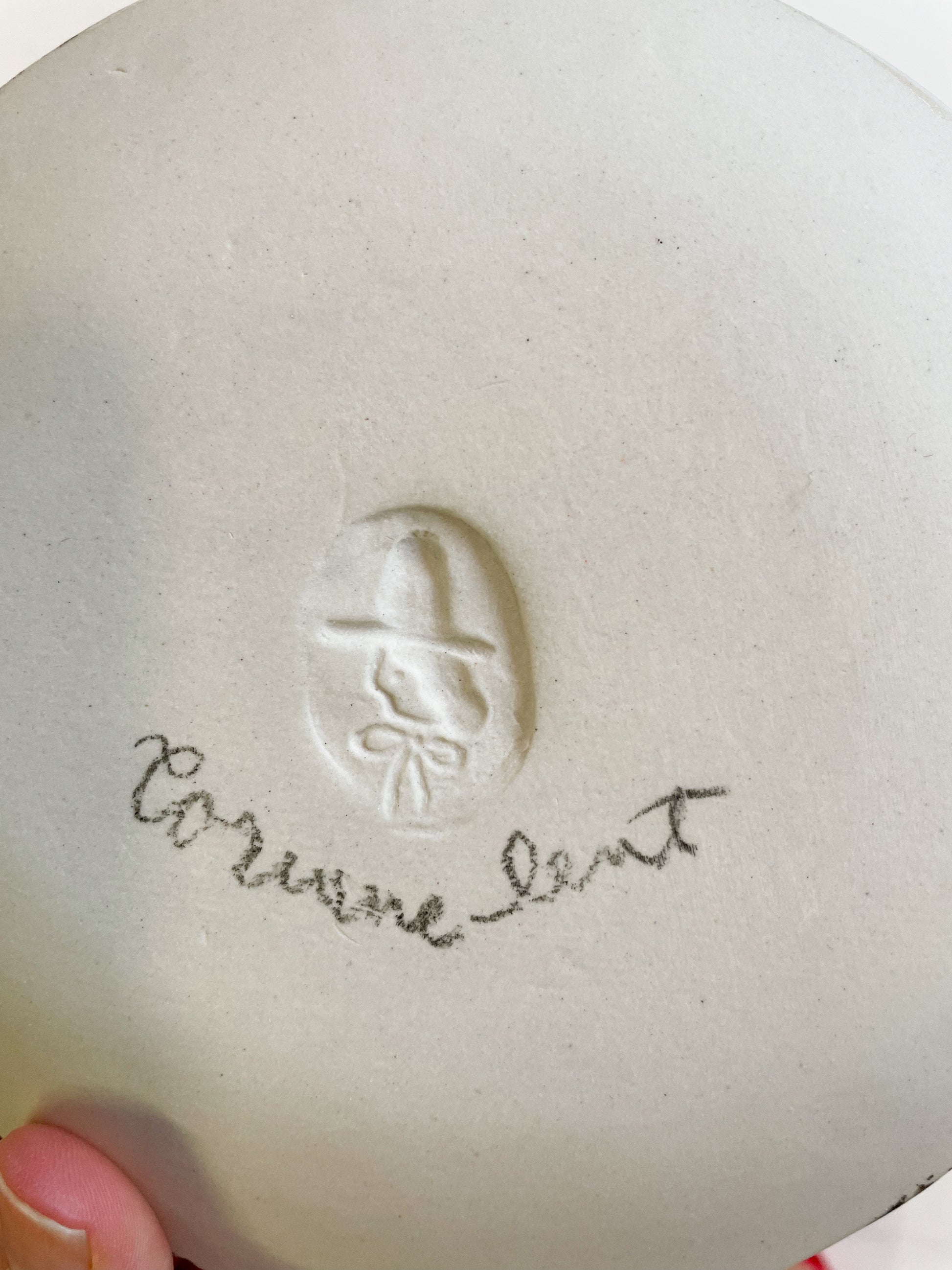 How they are made: These  are hand-sculpted, fired in a kiln, then a white glaze is applied to the top and the edges after which they are decorated and  fired a second time. The bottom is raw ceramic clay body. Wipe with damp cloth to clean or wash gently with mild soap and water