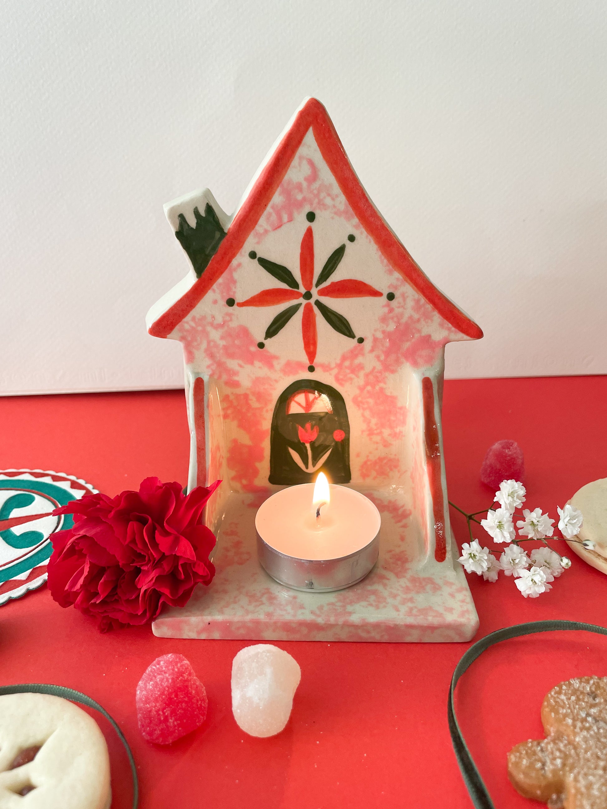 Hand painted folk cottage shelves are a great way to add dimension to a wall gallery. These are meant to hang on on a wall or sit on an altar or shelf. Add a tea light for a warm glow.