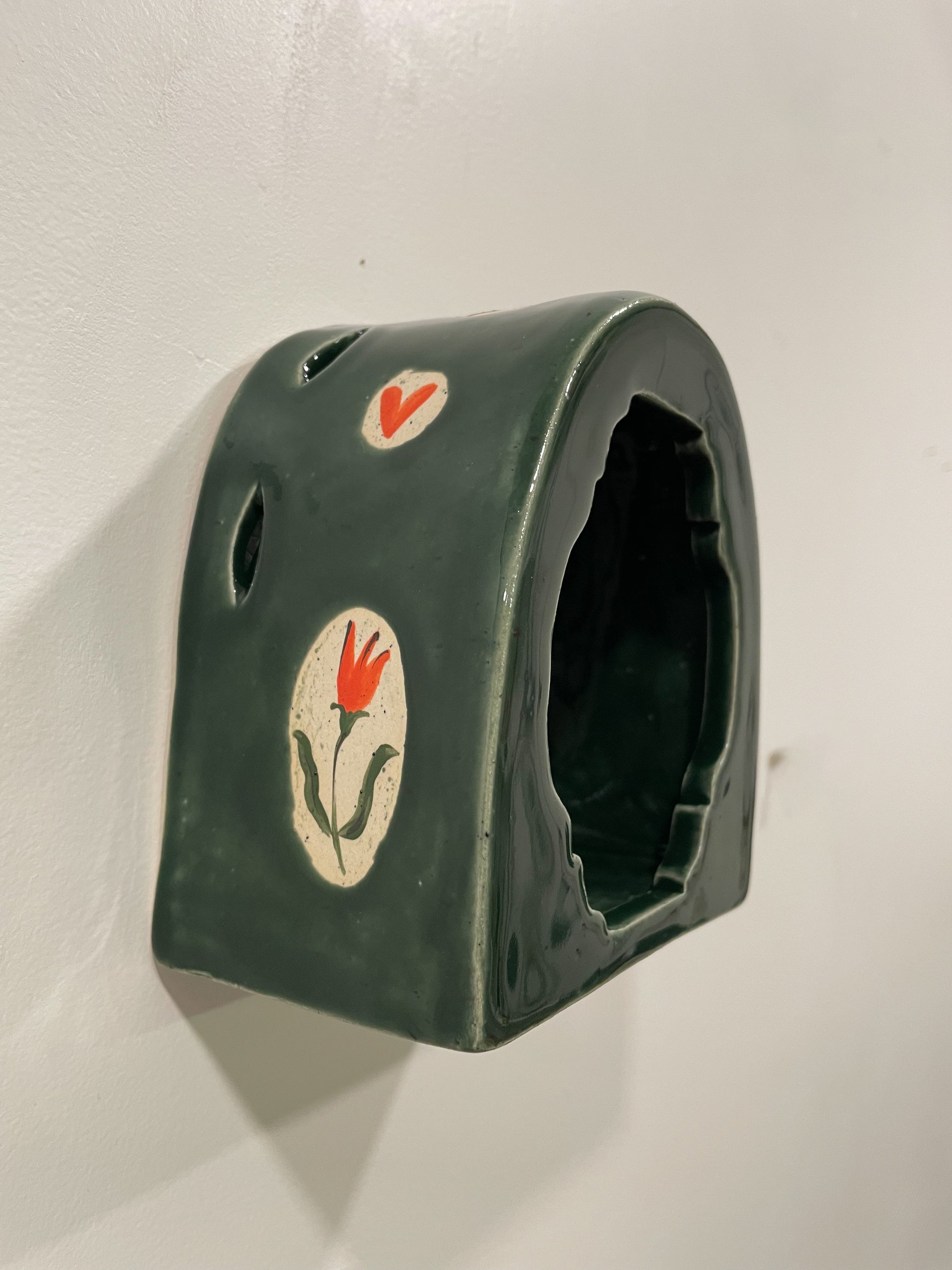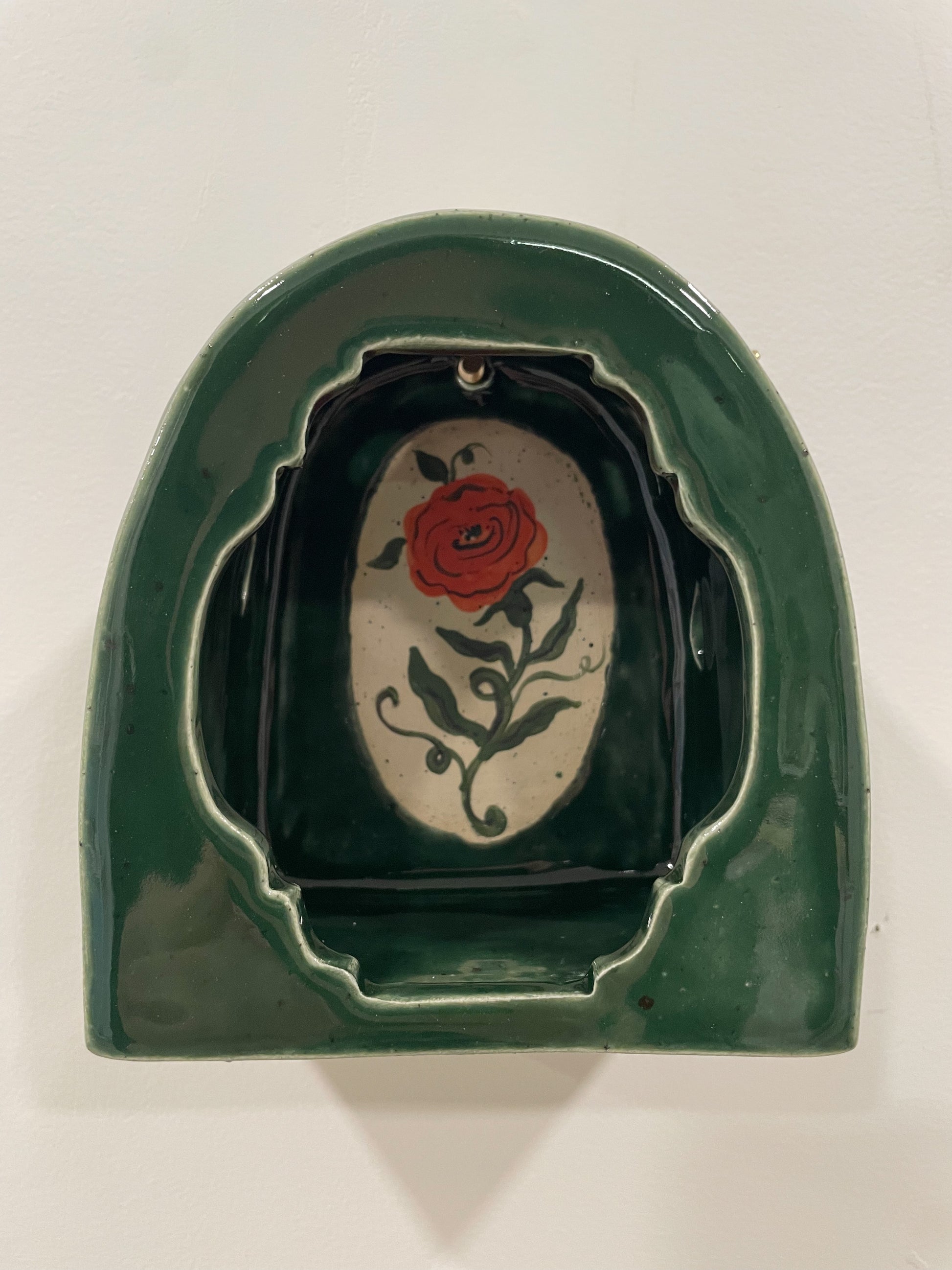 Hand painted enclosed wall shrines are a great way to add dimension to a wall gallery. These are meant to hang on on a wall or sit on an altar or shelf. Add a tea light for a warm glow.