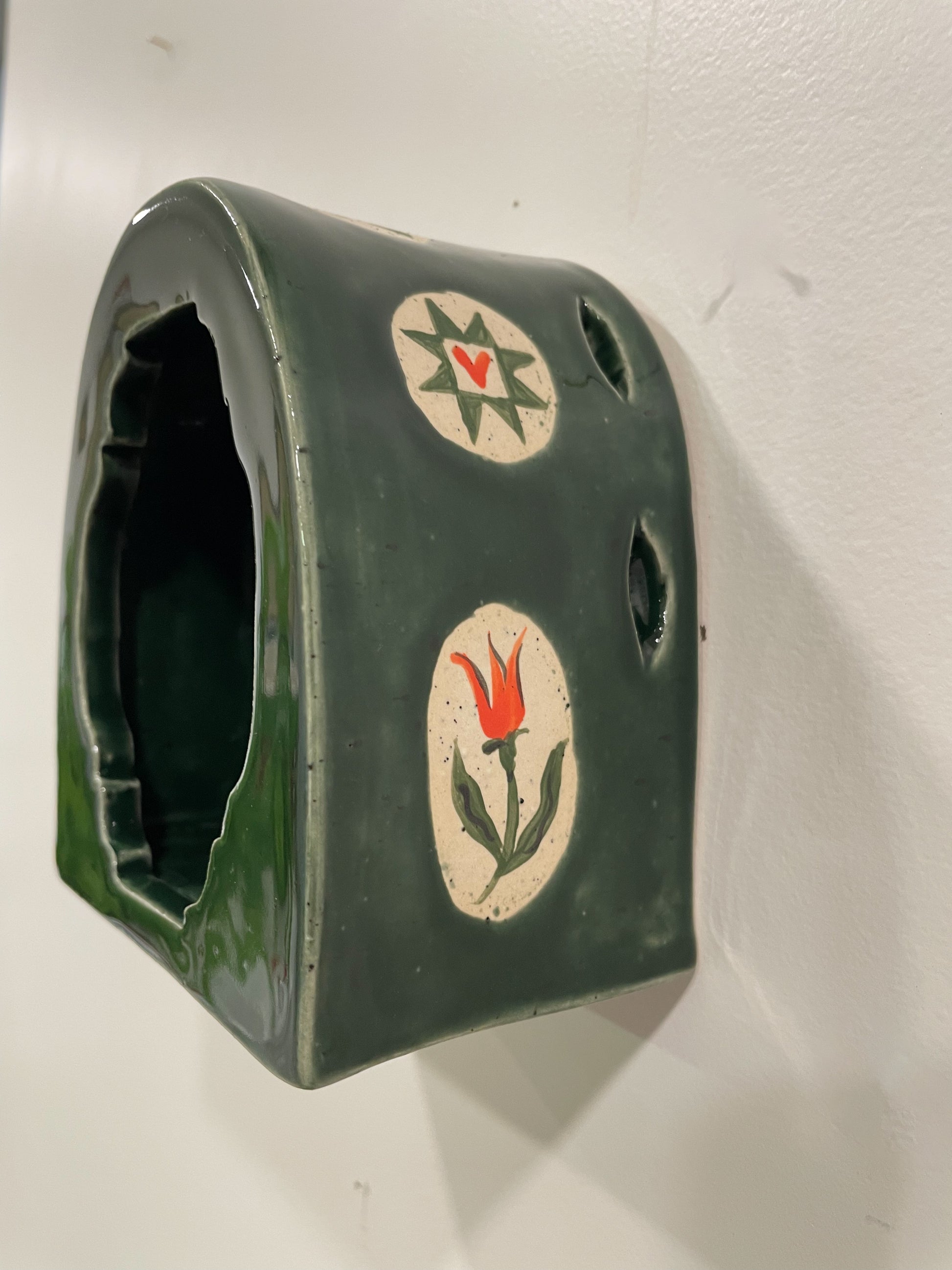How they are made: Hand built porcelain stoneware clay, hand painted with a paintbrush, dried for days, glazed and fired glazed fired two times in a skutt kiln over 2000 degrees.